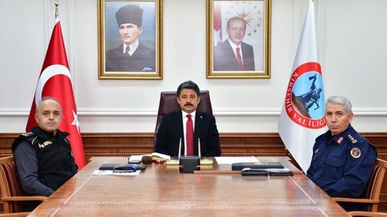 Kırşehir’de Ramazan Bayramı öncesinde alınacak tedbirlerin ele alındığı toplantıya Vali Murat Sefa Demiryürek, İl Jandarma Komutanı Alb. Ahmet Yıldırım ve İl Emniyet Müdürü Dr. Mesut Görücü katıldı.