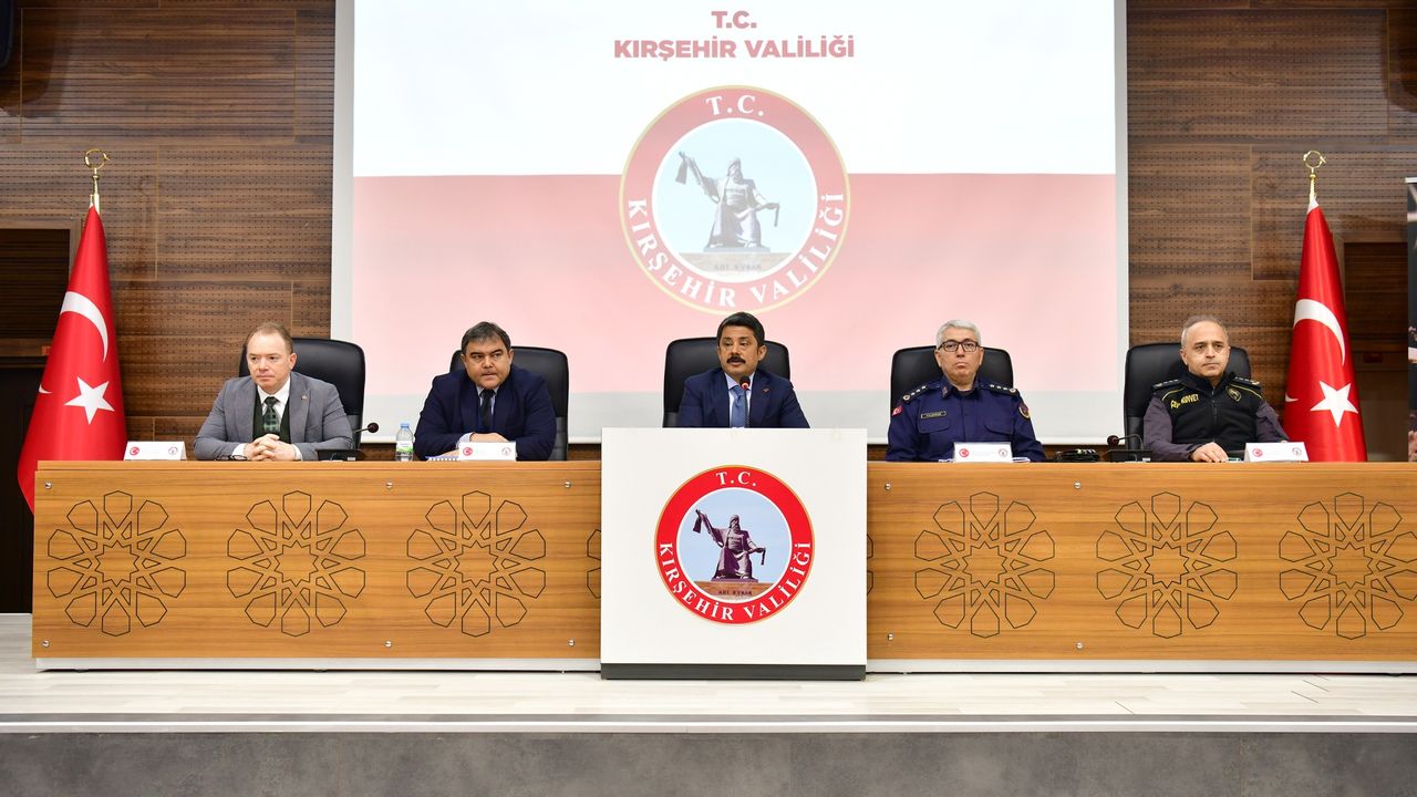 Kırşehir Valiliği tarafından yapılan açıklamada, “2025-2026 Eğitim-Öğretim Yılının ikinci döneminin ilimizde huzur ve güven ortamı içerisinde sürdürülebilmesi, okul çevrelerinde asayişin temini ve trafik güvenliğine ilişkin alınan tedbirlerin değerlendirildiği toplantı, Valimiz Murat Sefa Demiryürek başkanlığında yapıldı.” ifadelerine yer verildi.