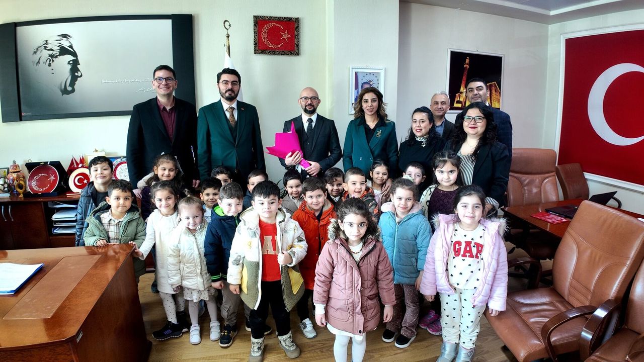 Hastanenin yönetim katında gerçekleşen ziyarette minik öğrenciler, ellerindeki çiçeklerle sağlık yöneticilerinin kapısını çalarak 14 Mart Tıp Bayramı’nı kutladı. Ziyaret kapsamında öğrenciler; Sağlık Hizmetleri Başkanı Ramazan Dulkadir, Destek Hizmetleri Başkanı Mücahit Düzsöz, Sağlık Hizmetleri Başkan Yardımcısı Bilal İlanbey ve Başhekim Yardımcısı Salih Buğra Baş ile bir araya geldi.