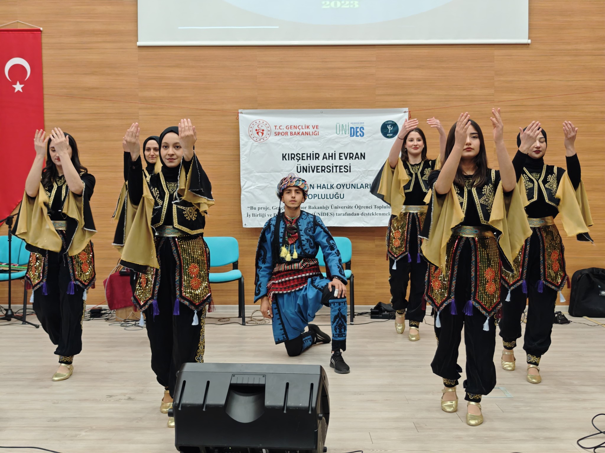 Üniversite öğrencilerine yönelik sosyal, sanatsal ve kültürel farkındalık oluşturmak amacıyla hayata geçirilen Ünides projesinin bu ayağında, Ahi Evran Üniversitesi öğrencilerinden oluşan Ahi Evran Halk Oyunları Topluluğu’nun performansı alkışlarla karşılandı. Yurdun dört bir yanından seçilen yöresel halk oyunlarını sergileyen topluluk, sahnedeki enerjileri ve uyumlu koreografileriyle izleyicileri mest etti.