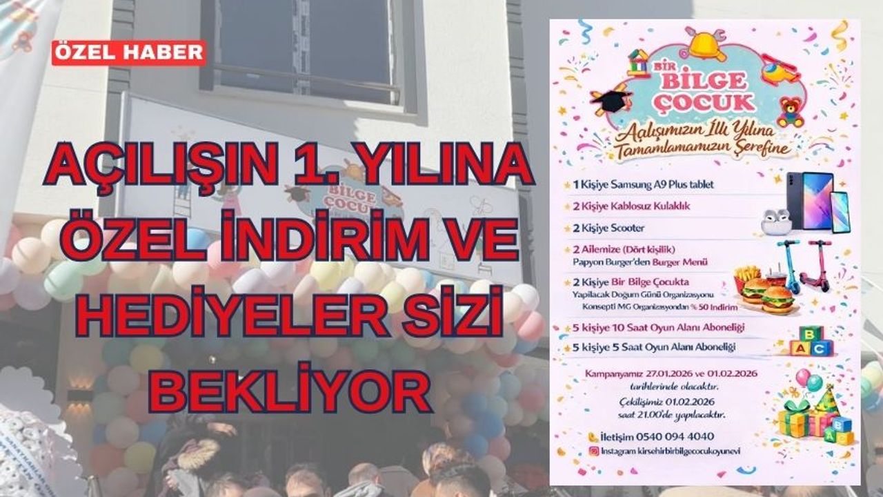 Kırşehir’de faaliyet gösteren Bir Bilge Çocuk Oyun Evi ve Meslek Atölyesi, açılışlarının birinci yılı dolayısıyla özel indirim ve kampanyalar düzenlediğini duyurdu. Çocuklara yönelik eğitici ve eğlenceli etkinlikleriyle dikkat çeken oyun evi, yıl dönümüne özel hazırlanan kampanyalarla ailelere avantajlı fırsatlar sunuyor.