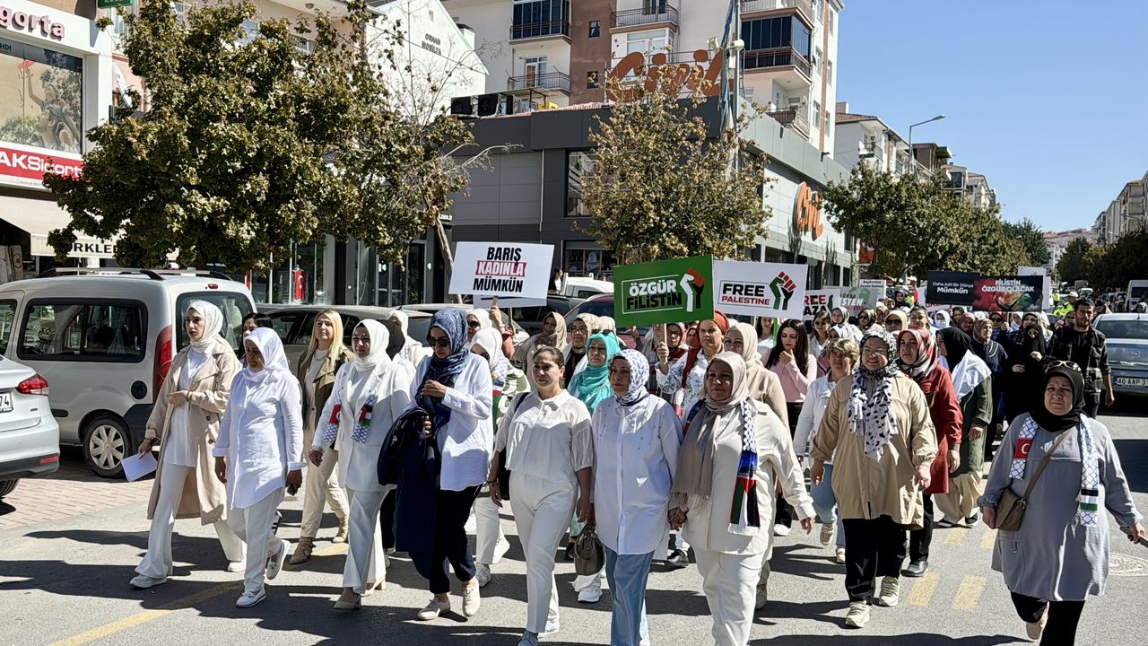 Yılmaz, "Kırşehir'den ve Türkiye'nin tüm illerinden dünyanın dört bir yanındaki kadınlara, kız kardeşlerimize sesleniyoruz. Nehirden denize özgür Filistin. Bugün tek bir şey söylüyoruz, vicdanlarımızla haykırıyoruz. Barış kadınla mümkündür." ifadesini kullandı. YOZGAT (AA)