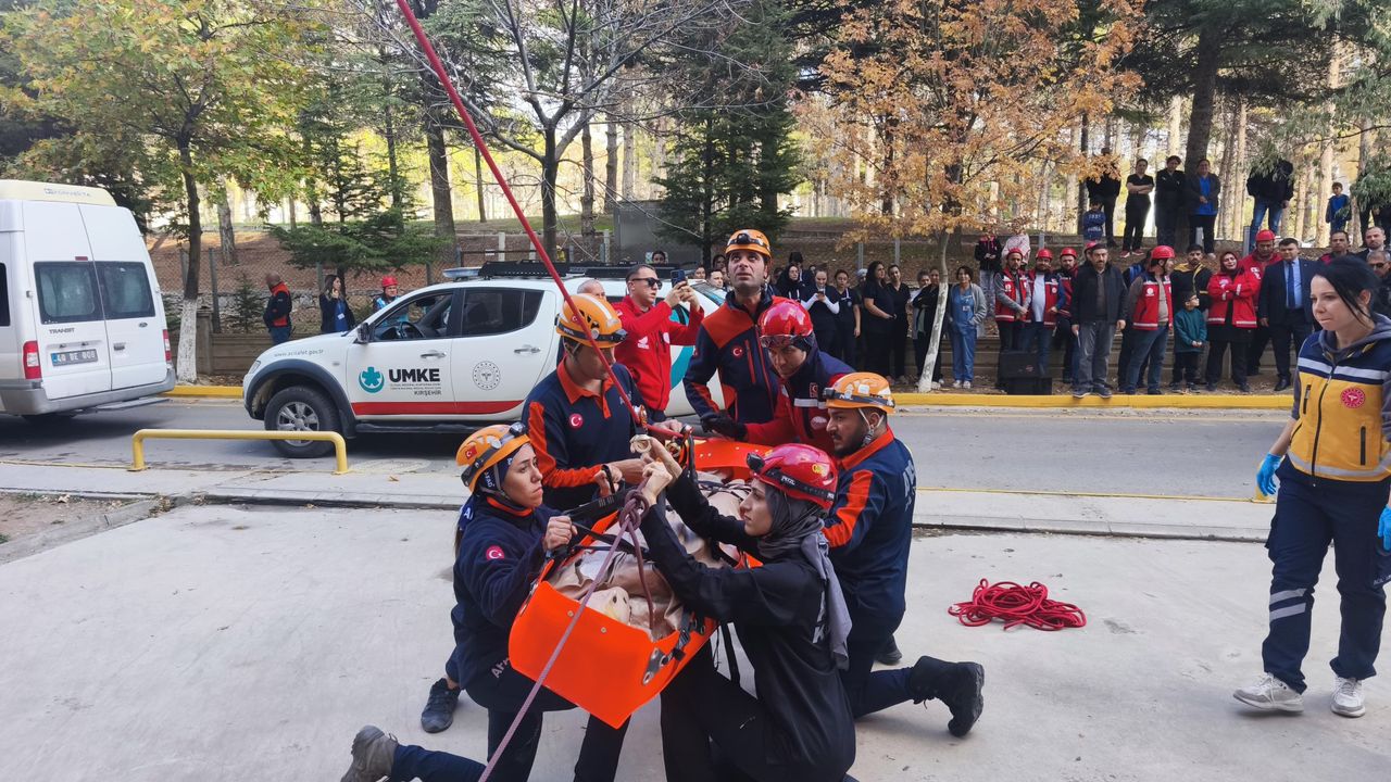 Kırşehir Eğitim ve Araştırma Hastanesinde, afet anında müdahale kapasitesini artırmak ve kurumlar arası koordinasyonu güçlendirmek amacıyla geniş kapsamlı bir deprem tatbikatı gerçekleştirildi. Gerçeğini aratmayan tatbikat senaryosu kapsamında, ekiplerin hızlı ve profesyonel müdahalesi dikkat çekti.