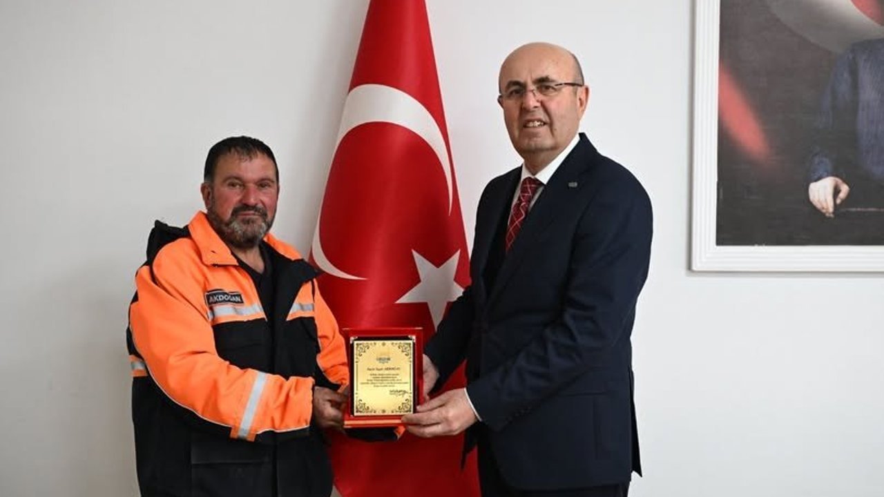 Başkan Ekicioğlu açıklamasında, “Bulmuş olduğu bir miktar altını, sahibine ulaştırmak üzere Zabıta Müdürlüğüne teslim eden Temizlik İşleri Müdürlüğü personeli Yaşar Akdoğan’ı, göstermiş olduğu örnek davranıştan dolayı tebrik ediyorum” sözlerine yer verdi.