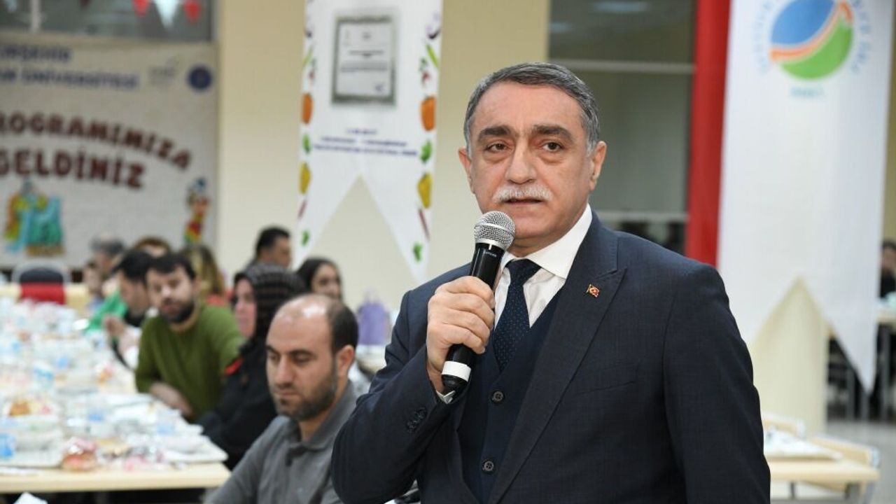 Yoğun katılımla gerçekleşen iftar programına Mustafa Kasım Karahocagil’in yanı sıra Rektör Yardımcısı Ali Güneş, Genel Sekreter Hüseyin İlter ve çok sayıda öğrenci katıldı. Üniversite yönetimi ve öğrencilerin aynı sofrada buluştuğu programda Ramazan ayının birlik ve beraberlik ruhu ön plana çıktı.