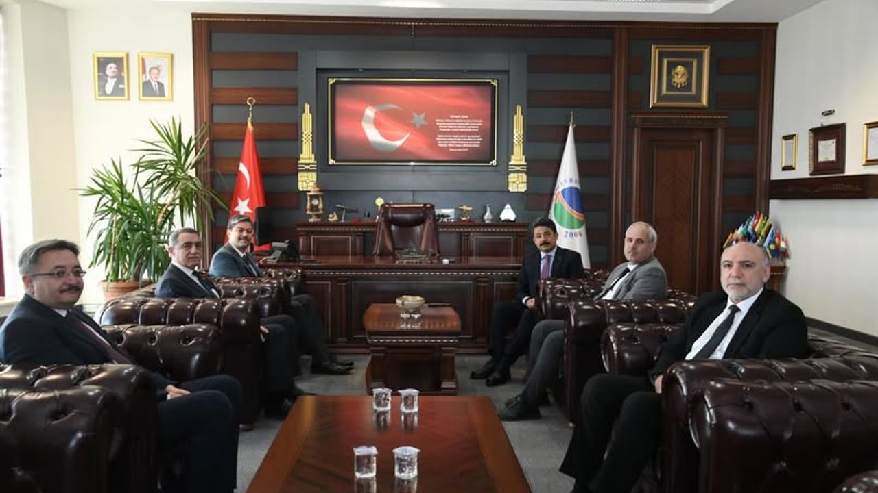 Ziyaret ve toplantı, KAEÜ Rektörlüğü Toplantı Salonu’nda gerçekleştirildi. Görüşmede Rektör Prof. Dr. Mustafa Kasım Karahocagil’e, Rektör Yardımcıları Prof. Dr. Musa Özata, Prof. Dr. Hüseyin Şimşek ve Prof. Dr. Ali Güneş ile Genel Sekreter Dr. Öğr. Üyesi Hüseyin İlter eşlik etti. Yapılan görüşmede üniversitenin mevcut çalışmaları, stratejik hedefleri ve fiziki yapısı başta olmak üzere, gelecek döneme dair planlamalar protokol üyelerine aktarıldı.